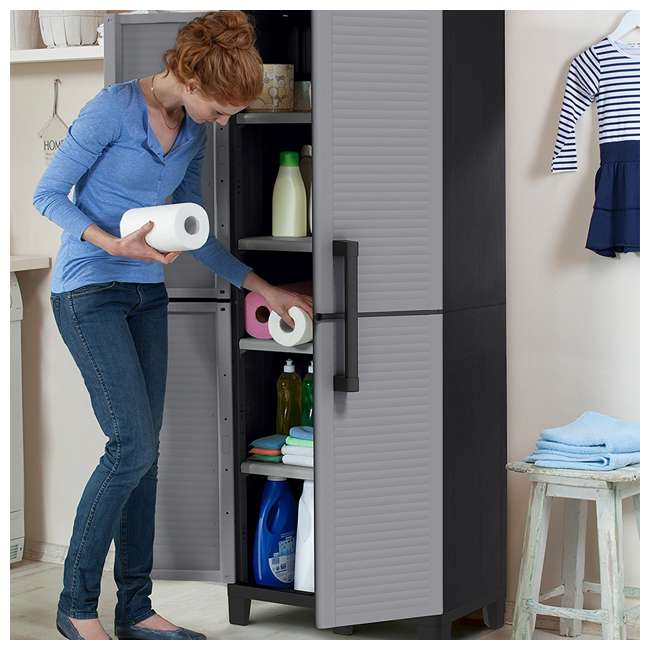 Buy keter space winner resin storage, plastic utility cabinet, 15 x 27, 4 adjustable shelves at walmart.com Sold and shipped by spreetail. Space winner classic tall cabinet. Officeworks resin storage cabinet, 33w x 18d x 66h, black overstock $ 382.32. Sold and shipped by spreetail. D) with 2,887 reviews and the hdx plastic freestanding garage cabinet in gray (27 in. The durability, modularity, and simplicity of the 4 shelf cabinet makes it the ideal solution for basements, attics and garages. The trend forward flat gray color is both sleek and refined and complements a variety of living areas, offering additional storage options for pantries, utility /laundry areas, dorms and mudrooms. Excellent interior capacity, with hole for use of the padlock for greater security. This 39 inch multipurpose cabinet provides ample storage in a transitional door style to complement any room. Four adjustable shelves that resist up to 55lbs (25 kg) each. Cabinets and bins provide a place to store and organize frequently used tools and supplies. Easy to assemble, move and clean.